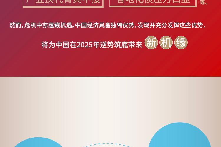 《中国经济2025:结构筑底与化危为机》在剖析世界和中国经济形势的基础上,分析世界经济的主要症结和时代变局下的中国经济新势能。如今世界经济正处于两个繁荣期之间的过渡期,推动上一轮繁荣的动能已显著衰退,中国唯有调整经济结构、顺应科技文明、切换发展动能,才能在经济结构性筑底中化危为机。 世界政治经济环境不确定性上升,地缘冲突加剧,逆全球化思维甚嚣尘上,新旧产业青黄不接,诸多不利因素制约世界经济走出衰退泥潭。困境之下,中国有自己的化解之道:以超级工程为代表的诸多大国红利,多元新兴产业合力接棒旧支柱产业,抢占科技红利与数智高地,把握中国企业出海的新机缘,上述要素将共同构成下一阶段中国实现经济筑底的主要动力。多重挑战之下,中国必须全面强化自身多元优势,方能在结构筑底后进入下一轮繁荣期。 《中国经济2025:结构筑底与化危为机》具体分析上述全球性挑战和中国经济独特优势,阐释中国经济“一枝独秀”的新空间、新机遇。本书实证丰富,分析透彻,探寻中国经济发展新动力,助力中国经济实现结构筑底,适合对中国经济发展感兴趣的大众读者阅读,也适合相关领域的研究人员参考。