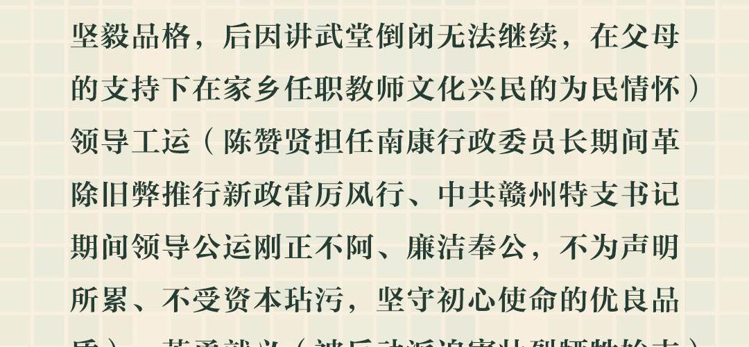 广播剧以革命烈士陈赞贤为人物原型,以生平经历为剧情架构,通过广播剧的形式进行艺术加工呈现,全三集,邀请了众多配音大佬倾情演绎。 剧情主要分为赤子初鸣(描绘陈赞贤少年时期,勤勉好学的坚毅品格,后因讲武堂倒闭无法继续,在父母的支持下在家乡任职教师文化兴民的为民情怀)、勇立潮头(陈赞贤担任南康行政委员长期间革除旧弊推行新政雷厉风行、中共赣州特支书记期间领导公运刚正不阿、廉洁奉公,不为声明所累、不受资本玷污,坚守初心使命的优良品质)、血铸丰碑(被反动派迫害壮烈牺牲始末)三大篇章。