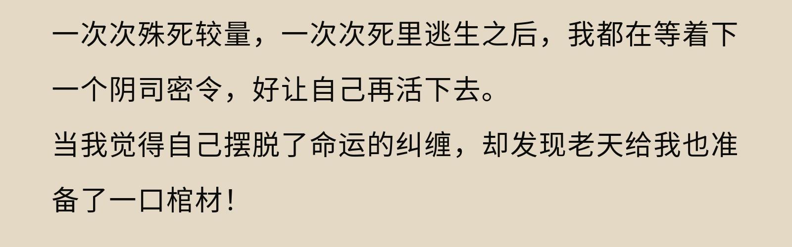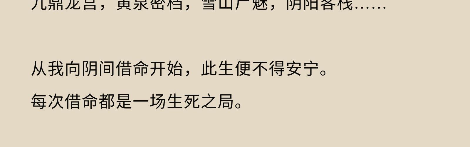 九鼎龙宫,黄泉密档,雪山尸魅,阴阳客栈……从我向阴间借命开始,此生便不得安宁。 每次借命都是一场生死之局。 一次次殊死较量,一次次死里逃生之后,我都在等着下一个阴司密令,好让自己再活下去。 当我觉得自己摆脱了命运的纠缠,却发现老天给我也准备了一口棺材。