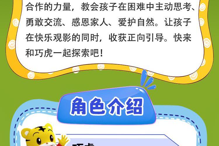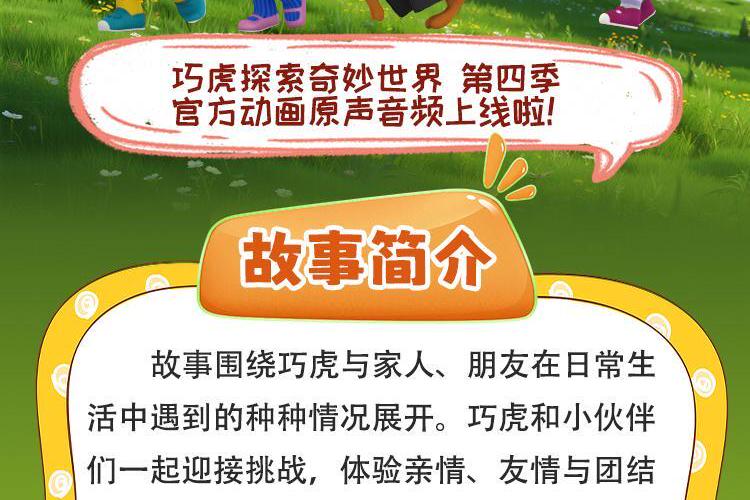 故事围绕巧虎与家人、朋友的日常生活展开。巧虎和小伙伴们一起迎接挑战,学会团结协作、勇敢沟通、主动解决困难。引导孩子与人和睦相处、感恩家人、爱护自然,在快乐观看中收获成长,与巧虎一同探索学习,悄然进步。