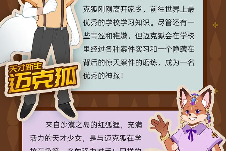 在《国际学院篇》里,迈克狐还不是大家熟悉的那位带着金丝眼镜、穿着格子斗篷的大神探,而是一个刚刚成年,离开格兰岛求学的大学生……