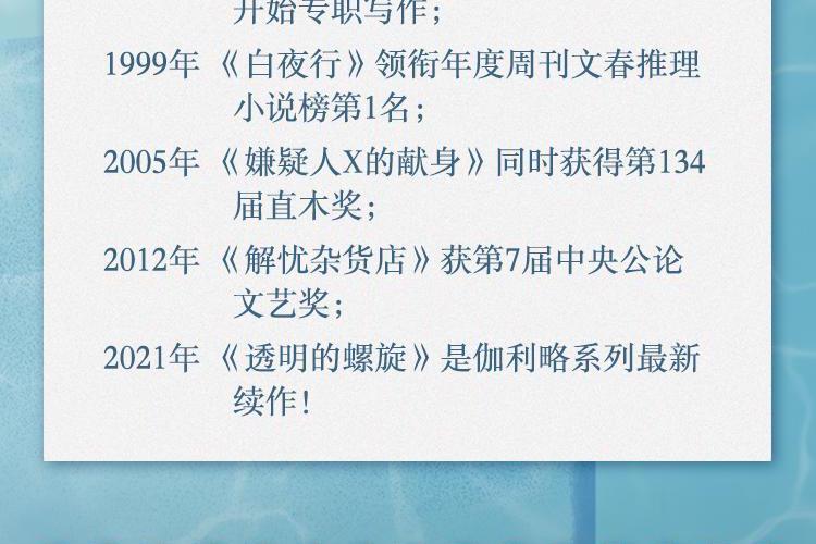 《嫌疑人X的献身》《圣女的救济》后,系列第3部长篇小说 一直以来,神探伽利略汤川学追求的唯有真相 而这一次,他却在想如何隐瞒... 每个人心中都会有想要守护的东西 如果这份守护的代价是牺牲一切 你有没有信心抵达终点?