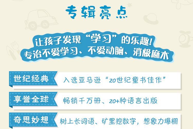 与《夏洛的网》和《小王子》并列的,亚马逊20世纪优秀童书 ! 男孩米洛整天无所事事,对什么都不感兴趣,也不明白自己为什么要上学。一天下午,他在自己房间发现了一个神奇的收费亭和一张地图。有人邀请他前往未知之地! 通过收费亭,米洛去到了很多奇妙的地方,期望国、懒散国、词语国、数字国、无知山,他遇到奇怪的人,还和恶魔打了起来…… 米洛能战胜恶魔吗?收费亭为什么会出现在米洛家?答案在故事中。 《神奇的收费亭》中蕴含着我们最想带给孩子的品质:探寻,寻找目标,克服困难,在恐惧中坚持,在挫折和危险中珍视友谊,在错误中获得经验,对他人施以援手,为自己的成就自豪。成长也在故事中。