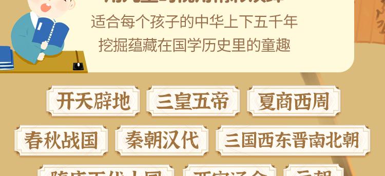中华上下五千年》从华夏始祖盘古开天辟地开始,将三皇五帝,夏商西周,春秋战国,秦朝汉代,三国西东晋南北朝,隋唐五代十国,两宋辽金,元朝,太明王朝,大清帝国,上下五千年历史的辉煌灿烂和沧海桑田都展现在这里。