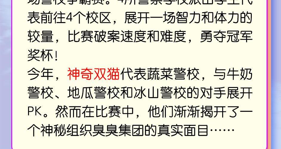 蔬菜警长神奇双猫合集(1-4季)来啦! 蔬菜警长神奇双猫第一季:校园侦探 蔬菜警长神奇双猫第二季:怪盗杰克 蔬菜警长神奇双猫第三季:警校争霸赛 蔬菜警长神奇双猫第四季:海上骑士团