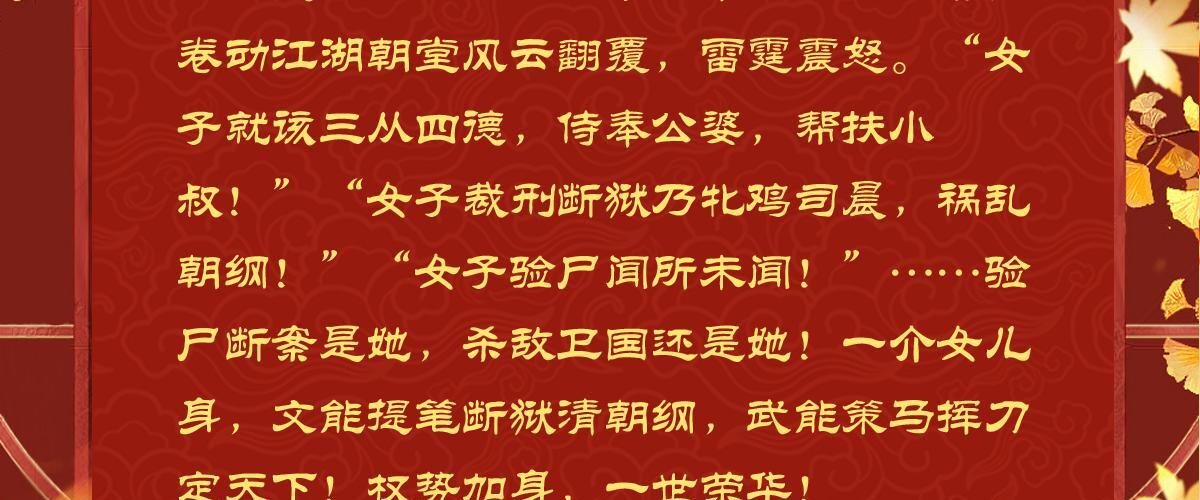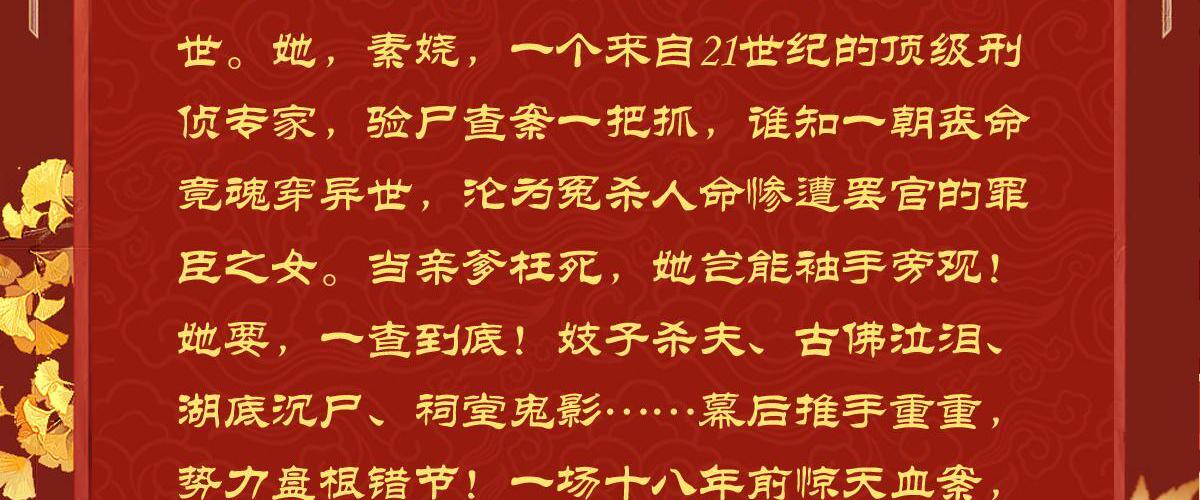 一道诏雪令,一旨催命符。大雍前任刑部尚书骤然惨死,一朵追凶霸王花横空出世。她,素娆,一个来自21世纪的顶级刑侦专家,验尸查案一把抓,谁知一朝丧命竟魂穿异世,沦为冤杀人命惨遭罢官的罪臣之女。当亲爹枉死,她岂能袖手旁观!她要,一查到底!妓子杀夫、古佛泣泪、湖底沉尸、祠堂鬼影……幕后推手重重,势力盘根错节!一场十八年前惊天血案,卷动江湖朝堂风云翻覆,雷霆震怒。“女子就该三从四德,侍奉公婆,帮扶小叔!”“女子裁刑断狱乃牝鸡司晨,祸乱朝纲!”“女子验尸闻所未闻!”……验尸断案是她,杀敌卫国还是她!一介女儿身,文能提笔断狱清朝纲,武能策马挥刀定天下!权势加身,一世荣华!