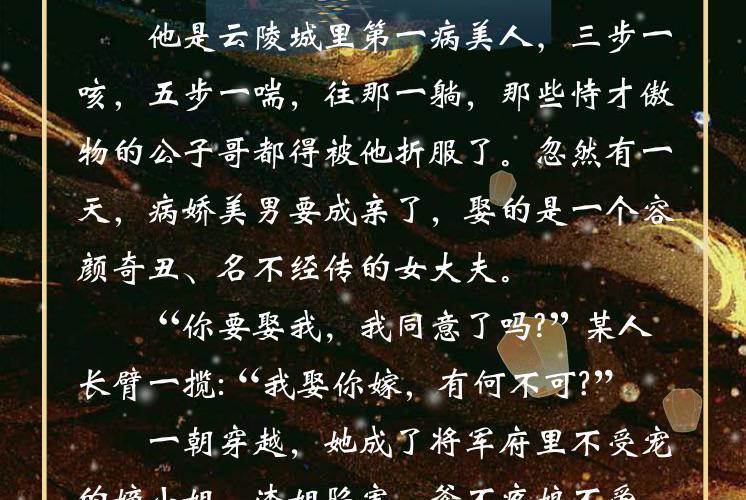 根据 弥洛佛 原著《王爷是病娇,要宠着》制作,由磨铁集团与TME播客创作中心联合出品。 他是云陵城里第一病美人,三步一咳,五步一喘,往那一躺,那些恃才傲物的公子哥都得被他折服了。忽然有一天,病娇美男要成亲了,娶的是一个容颜奇丑、名不经传的女大夫。 “你要娶我,我同意了吗?”某人长臂一揽:“我娶你嫁,有何不可?” 一朝穿越,她成了将军府里不受宠的嫡小姐,渣姐陷害,爹不疼娘不爱。没关系,她一手银针,一手病娇王爷,这个天下,她横着走!乱世已至,这天下,也不仅是男儿的天下。 风云会际,且看今生,谁主沉浮! 主播: 风乐——旁白、云若菱、陆华浓、花重锦、云若依 等 江小洛——叶青绾、容冉、舒云仙、连焕、莫眠止 等 墨华——江无眠、淳于辰、江景曜、第五鹤轩、灵染 等 夜知秋——江雪城、乔桥、夜麟、姬无双、蓝璞玉 等 天宇——叶宿、江烨、封麟、方灏、南鲛 等 炎生——云苏、容弃、苏檀宁、宇文即明、钟离寐 等 制作团队 策划:江小洛 监制:风乐 改文:江小洛 后期:声匠传音、倩 审听:风乐 美术:江小洛、风乐 片花制作:萧染 片花编剧:江小洛