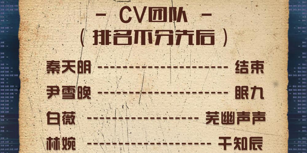 结束、 眠九、芜幽声声、千知辰、傅九音、波仔、野狼、小柯、同影、水夙、 于计等主播倾情出演