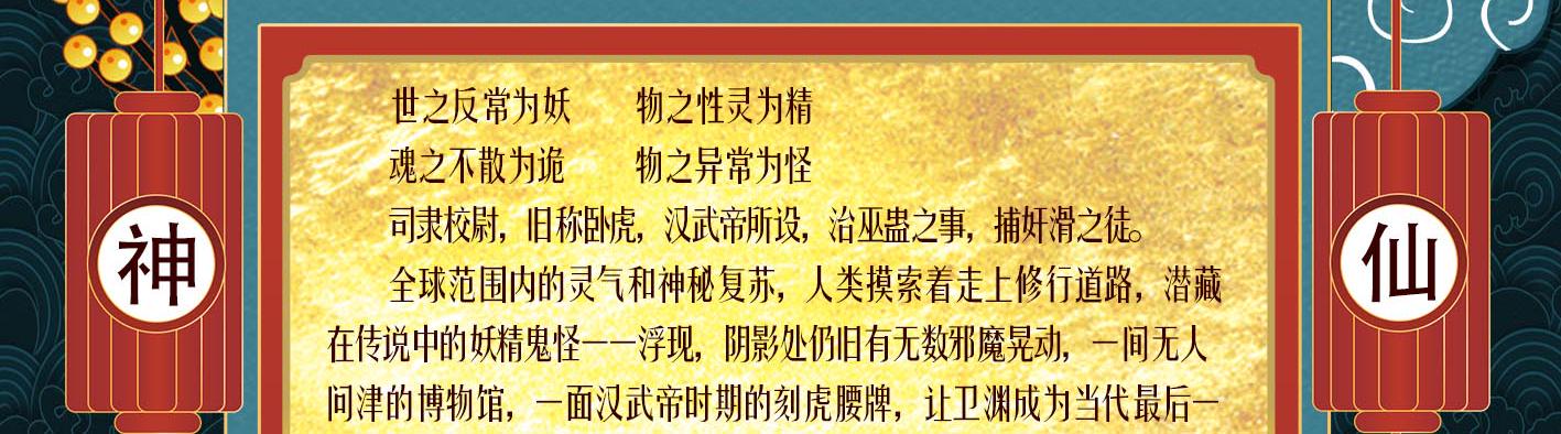 (本版文本已追上作者更新进度)世之反常为妖,物之性灵为精,魂之不散为诡,物之异常为怪。司隶校尉,旧称卧虎,汉武帝所设,治巫蛊之事,捕奸滑之徒。全球范围内的灵气和神秘复苏,人类摸索着走上修行道路,潜藏在传说中的妖精鬼怪一一浮现,阴影处仍旧有无数邪魔晃动。