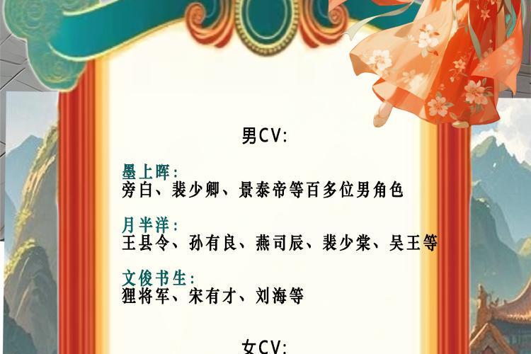 墨上晖 : 旁白、裴少卿等大多数男性角色