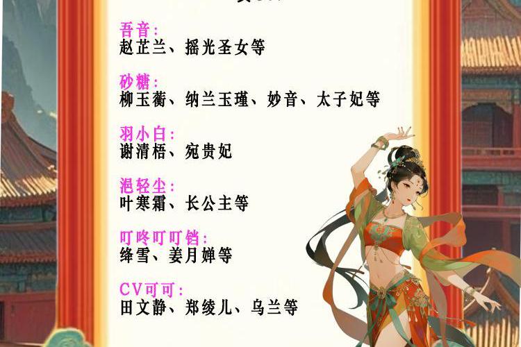 砂糖:柳玉蘅、纳兰玉瑾、太子妃、妙音尼姑等
