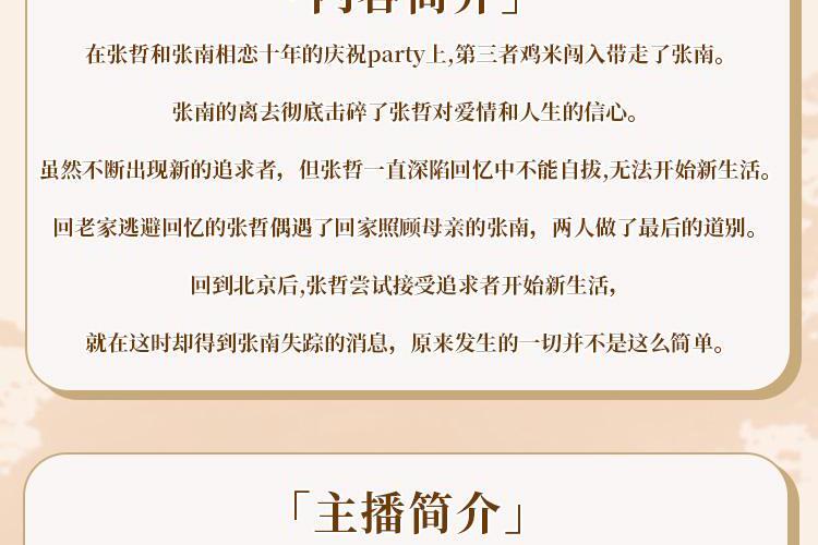 在张哲和张南相恋十年的庆祝party上,第三者鸡米闯入带走了张南。张南的离去彻底击碎了张哲对爱情和人生的信心。虽然不断出现新的追求者,但张哲一直深陷回忆中不能自拔,无法开始新 生活 。回老家逃避回忆的张哲偶遇了回家照顾母亲的张南,两人做了最后的道别。回到北京后,张哲尝试接受追求者开始新生活,就在这时却得到张南失踪的消息,原来发生的一切并不是这么简单。