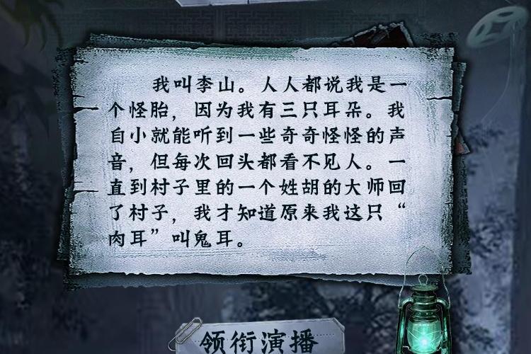 我叫李山。人人都说我是一个怪胎,因为我有三只耳朵。我自小就能听到一些奇奇怪怪的声音,但每次回头都看不见人。直到村子里的一个姓胡的大师回了村子,我才知道原来我这只肉耳”叫鬼耳。