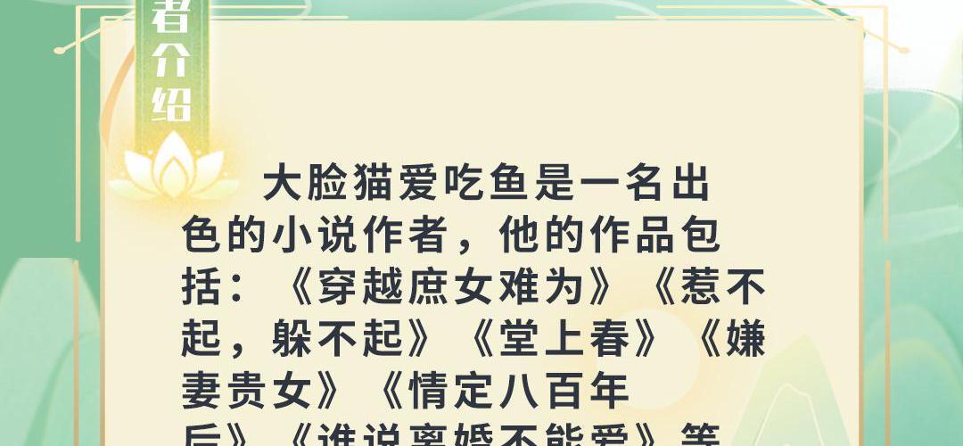 穿越世界,无奇不有。所以陶言真对于自己穿越成极品恶女,外带有极品老妈极品哥哥这种事情很是淡定。当然了,她还是对洗心革面重新做人什么的抱着那么一小丢丢的希望。于是穿越大神被感动了:那就赐你个极品男人吧。 【作者介绍】 大脸猫爱吃鱼是一名出色的小说作者,他的作品包括:《穿越庶女难为》、《惹不起,躲不起》、《堂上春》、《嫌妻贵女》、《情定八百年后》、《谁说离婚不能爱》、等,本本精品,字字珠玑,作者大脸猫爱吃鱼创作的小说情节跌宕起伏、扣人心弦,情节与文笔俱佳。 【团队介绍】 出品:阅米文化 演播:肜受,晃晃,泽瑾