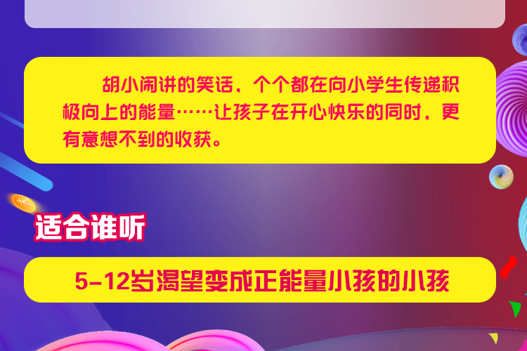 会讲笑话的小学生胡小闹来啦!学校的囧事,家里的糗事,外面遇到的新鲜事儿,通过胡小闹的嘴巴讲出来,保准能让你哈哈哈。 记住口号哦:不听胡小闹,简直睡不着觉!