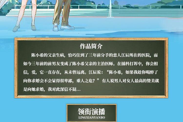 陈小希的父亲生病,恰巧住到了三年前分手的恋人江辰所在的医院,而如今三年前的前男友变成了陈小希父亲的主治医师。在插科打诨中,你会相信,爱,它一直存在,从未曾远离。 江辰说:“陈小希,如果我趁你喝醉了向你求婚会不会显得很卑鄙,乘人之危?” 有人说男人对女人最高的赞美就是向她求婚,我对此深信不疑...