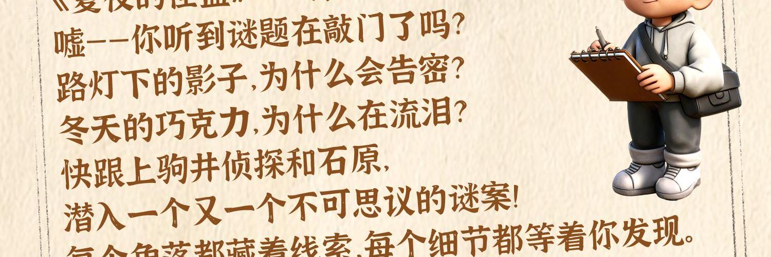 想当小侦探吗?想解锁 “看穿真相” 的超能力吗?快来听《儿童侦探系列故事》! 深夜巷子里的 “无血脚印” 藏着什么秘密?会被音乐影响的 “特殊蜂类” 有什么特别之处?用气球求救的少年怎么传递信号?神秘访客又为何因一只小蚊子露出破绽?每一集都有超烧脑的谜案、超有趣的线索,还有超懂引导的驹井侦探,和总爱 “灵光一闪” 的石原助手! 没有惊悚画面,只有藏在生活里的小知识 —— 二氧化碳比空气重、雌蚊的生活习性、常见物品的特别用途…… 跟着他们一起观察细节、破解谜题,你会发现:原来身边的每一个小现象,都可能是找到答案的关键! 现在就竖起耳朵,和驹井侦探一起,开启一场 “边听故事边学知识” 的侦探冒险吧!下一个识破真相的小侦探,说不定就是你!