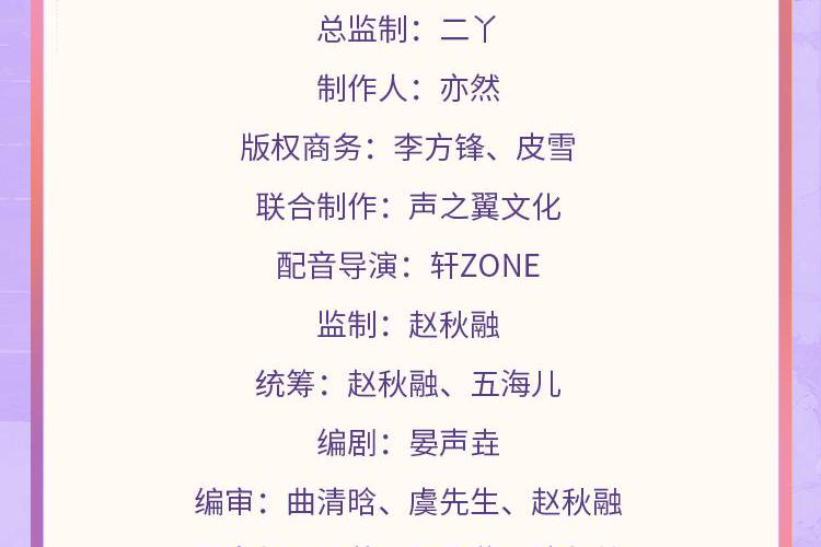 轩ZONE,滚滚工作室配音演员;网络社团翼之声中文配音社团CV、三个糙汉一个软妹组成员,声音清朗华丽,风格多变,多为游戏、动漫、广播剧配音,代表作品有《血型君》、《枕男子》、《魔鬼恋人》等。