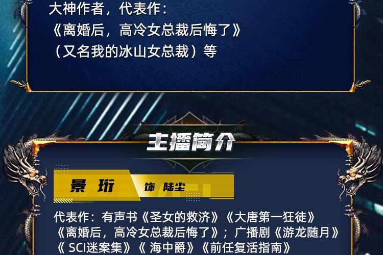 衍声工作室,集编剧、录制、后期制作于一体的专业制作团队,专注国内长音频及有声市场,只做精品,代表作《神武至尊》、《监国太子》。