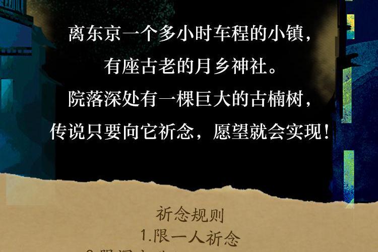 离东京一个多小时车程的小镇 有座古老的月乡神社 院落深处有一棵巨大的古楠树 传说只要向它祈念,愿望就会实现.............
