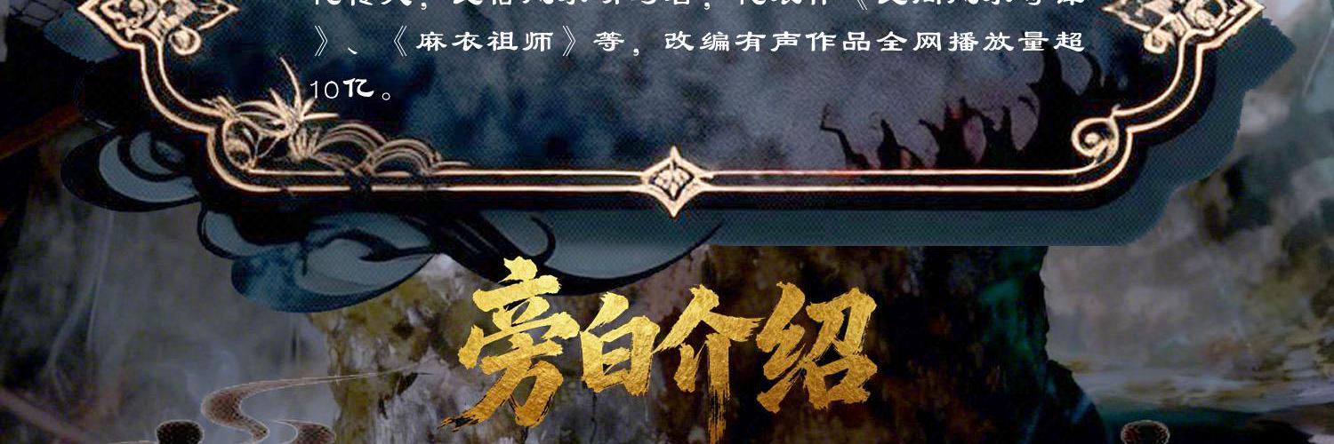 有声界的一名小学生,主述作品70多部,代表作《猎罪者》《民调局异闻录》《北派盗墓笔记》《阴阳掌门人》