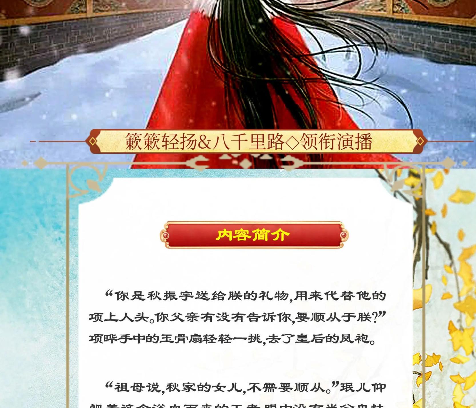 簌簌轻扬:新晋优质女主播,声音甜美,声线多变。主要作品品:《重生八零:媳妇有点辣》《少年白马醉春风》,《乾隆后宫之令妃传》《靠女人修仙系统》等。
