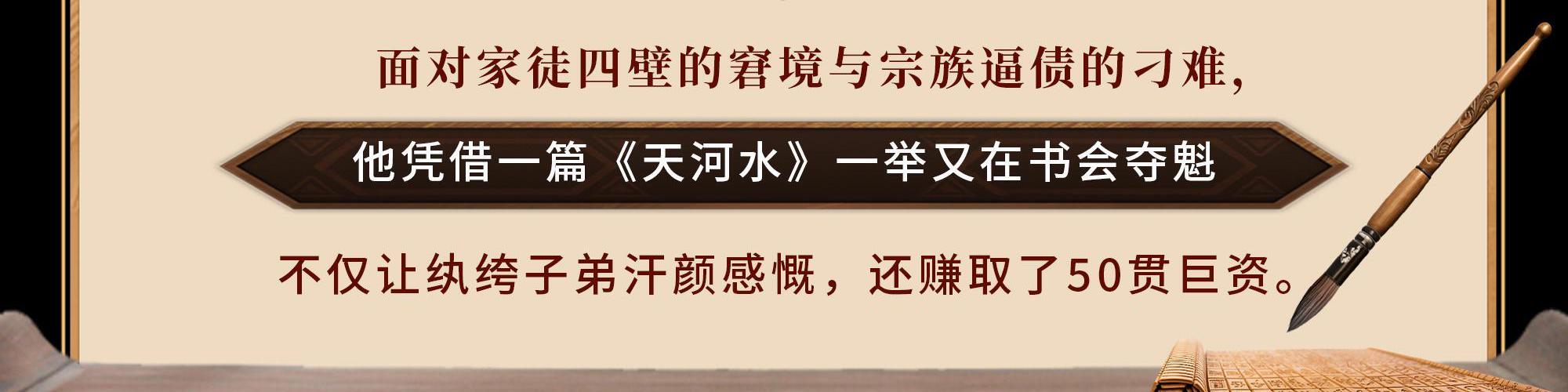 面对家徒四壁的窘境与宗族逼债的刁难,他凭借一篇《天河水》一举又在书会夺魁,不仅让纨绔子弟汗颜感慨,还赚取了50贯巨资。
