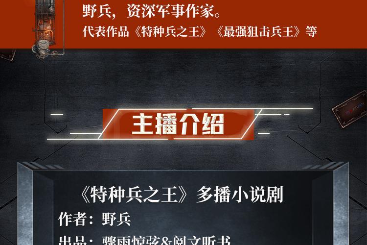 野兵,资深军事作家。代表作品《特种兵之王》、《最强狙击兵王》等