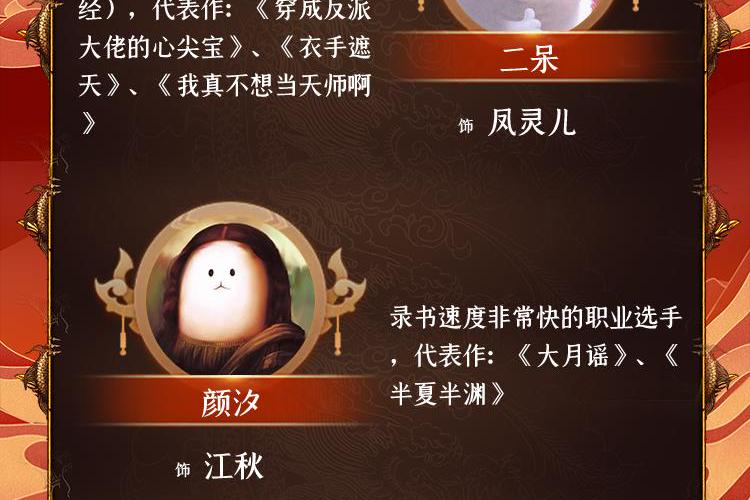 梦惊鸿、二呆、颜汐、奕渊酒酒、酒酿圆子