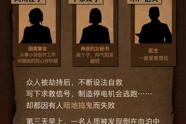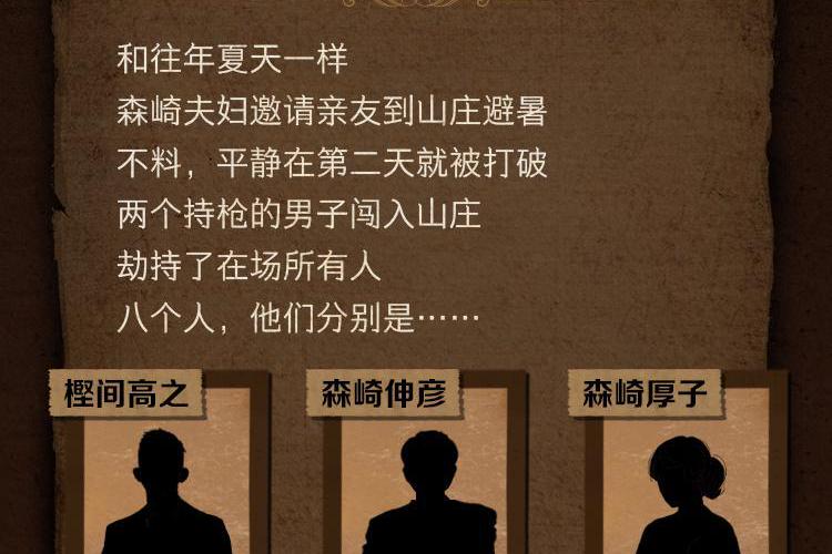 和往年夏天一样,森崎夫妇邀请亲友到山庄避暑 不料,平静在第二天就被打破 两持枪的男子闯入山庄 劫持了在场所有人... 众人被劫持后,不断设法自救 却都因有人暗地捣鬼而失败 第三天早上,一名人质被发现倒在血泊中...