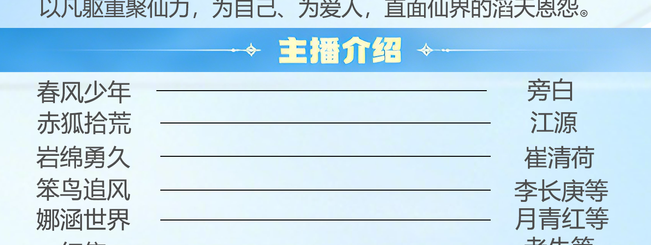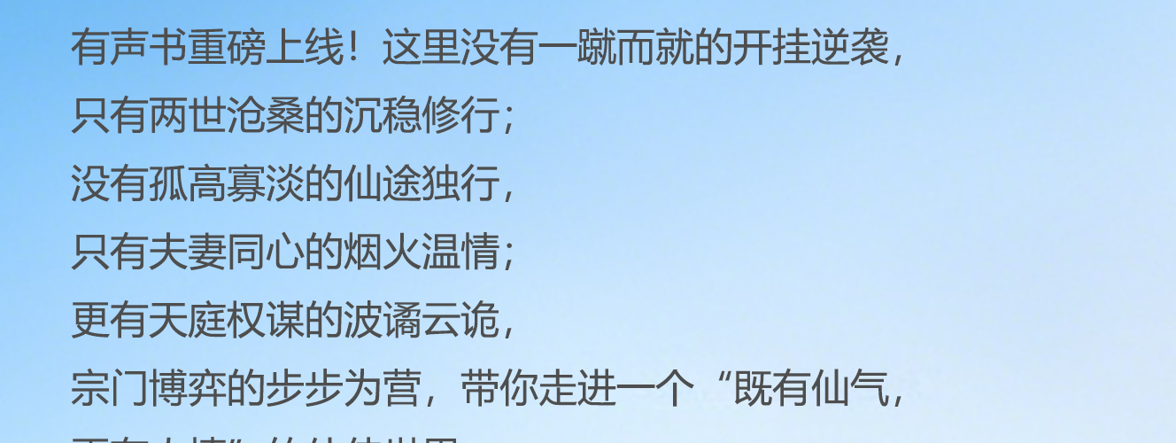 我是一名深耕有声领域的创作者,现带着热忱与专业,入驻腾讯音乐声波创作中心 。 在专业成长上,我从喜马拉雅喜播学堂79期结业,还通过了喜马拉雅演播能力认证,系统学习打磨出扎实的配音功底。实战履历里,在喜马拉雅平台,我参与录制的分成书《我,截教大师兄 加入聊天群》(旁白及角色),播放量超70万 ,在玄幻仙侠题材中,精准拿捏角色性格、营造奇幻氛围。 此外,我在呱呱有声录音宝积累了丰富经验,二十多部书的录制跨度多样题材,无论沉稳老者、活力青年,还是纯真少年,都能以声音赋予角色灵魂,适配不同风格需求。