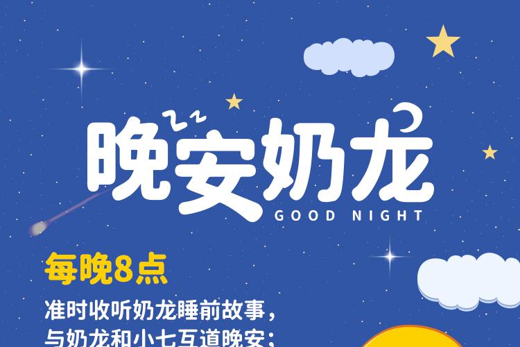睡前听奶龙,好梦甜又圆。奶龙经常因为自己天真的性格和新奇的想法给小七惹了不少的麻烦和笑话,而小七虽然嘴上吐槽奶龙,但等奶龙真正遇到问题或危险时,又勇敢地挺身而出,帮他解决各种问题,两人的友谊因此越来越稳固。