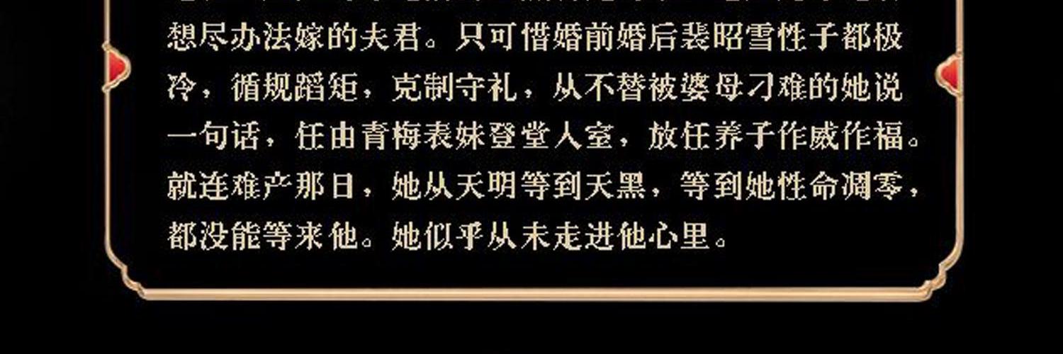 裴昭雪,晏朝第一宰辅,皎皎如玉,标准的高岭之花,是沉鸢穿越前的重点研究对象,也是她穿越后想尽办法嫁的夫君。只可惜婚前婚后裴昭雪性子都极冷,循规蹈矩,克制守礼,从不替被婆母刁难的她说一句话,任由青梅表妹登堂入室,放任养子作威作福。就连难产那日,她从天明等到天黑,等到她性命凋零,都没能等来他。她似乎从未走进他心里。*重回一切伊始,沉鸢想通了。她不想再撞南墙,也不打算再活得那么憋屈。这一世,她要只为自己和在意她之人而活!*被诬陷推绿茶表妹入寒湖。沉鸢冷嗤一笑,一脚将她重新踹入湖中:“对,是我推的,推的就是你这没脸没皮的小三!”笑面虎婆母逼她同意纳妾。沉鸢欣然应下,转眼带了一堆女人过来:“既是纳妾,一房怎么够呢?这是三百六十五房侍妾,您数数。”顽劣养子不要她当母亲。沉鸢掏出一把匕首用衣袖擦拭,核善一笑:“那怎么办?那不然,你现在去死好了,我也不是很想养你这种孽畜呢。”*沉鸢在发疯的路上一去不复返,眼中再无裴昭雪。直至她坐上第一女商的宝座,将和离书递到他身前,男人才后知后觉慌了神,开始思考自己到底是哪里做的不对。