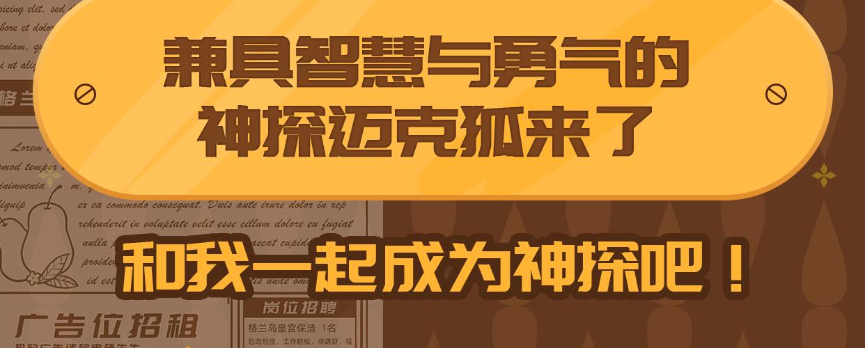 哪里有谜题,哪里就有破解谜题的智慧;哪里有罪恶,哪里就有打击罪恶的勇气。兼具智慧与勇气的神探迈克狐来了!他将带着你利用科学原理与科普知识破解神奇案件,守卫格兰岛安宁。在与邪恶斗智斗勇的过程中,你还会遇到勇敢可爱的小助理啾撒,神秘莫测的千面怪盗……神探迈克狐又将与他们碰撞出怎样的火花,又有哪些迷案等着你一起来破解呢?